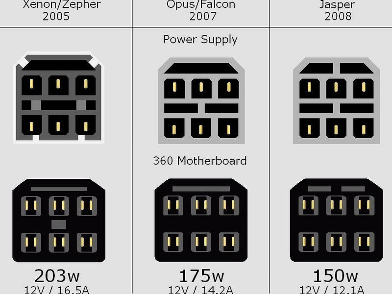 Power connectors for the original Xbox 360 console: